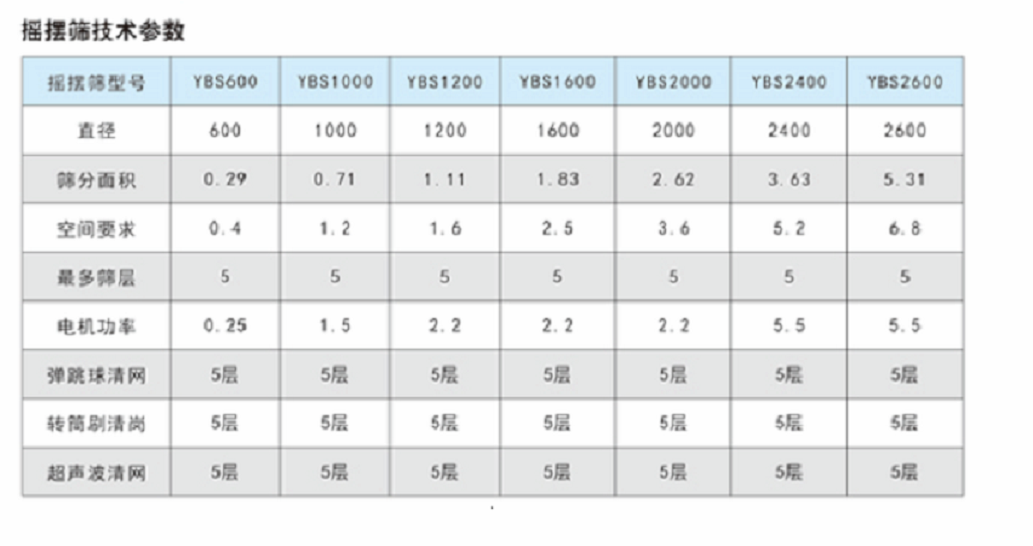 YBS搖擺篩的技術(shù)參數(shù)