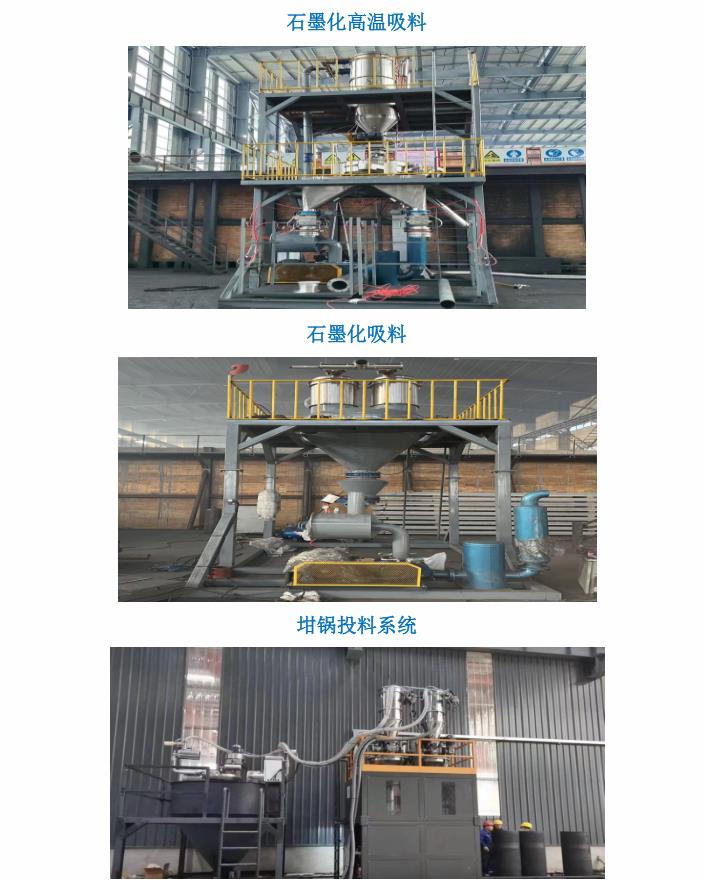 公司針對新能源、新材料、石墨化預(yù)碳化、鋰電負(fù)極行業(yè)等設(shè)計的生產(chǎn)線,大功率真空吸料機(jī),輸送距離最達(dá)遠(yuǎn)可達(dá)170米,260°高溫料經(jīng)過冷卻系統(tǒng)可直接裝進(jìn)噸包。