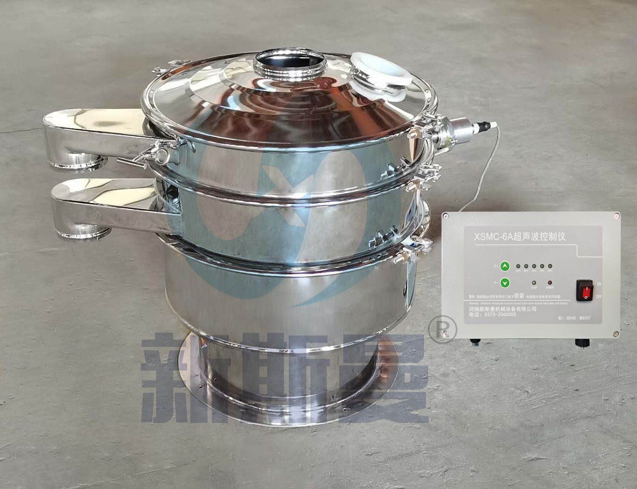 超聲波振動(dòng)篩是將220V、50Hz或110V、60Hz電能轉(zhuǎn)化為36KHz的高頻電能,輸入超聲換能器,將其變成36KHz機(jī)械振動(dòng),產(chǎn)生的功率超聲波使篩網(wǎng)作高頻振動(dòng)。篩網(wǎng)上的物料在作低頻旋振運(yùn)動(dòng)的同時(shí),疊加上超聲振動(dòng),既可防止網(wǎng)孔堵塞,又可使篩分機(jī)提高產(chǎn)量和質(zhì)量,從而達(dá)到快速篩分和清網(wǎng)的目的,使超微細(xì)粉篩分成為易事。該系統(tǒng)在傳統(tǒng)的振動(dòng)篩基礎(chǔ)上在篩網(wǎng)上引入一個(gè)低振幅、高頻率的超聲振動(dòng)波(機(jī)械波),以改變超微細(xì)分體的篩分性能。特別適合高附加值精細(xì)分體的用戶使用。