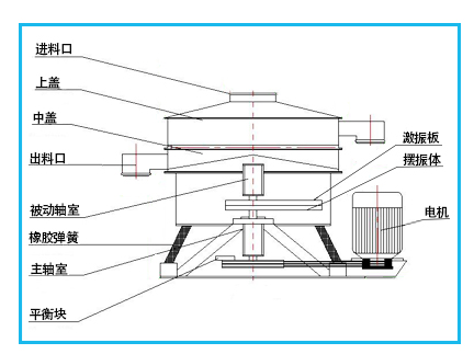 振動(dòng)電機(jī):是設(shè)備的主要?jiǎng)恿?lái)源,通過(guò)振動(dòng)電機(jī)激振力的作用使物料在篩面上運(yùn)動(dòng)。
