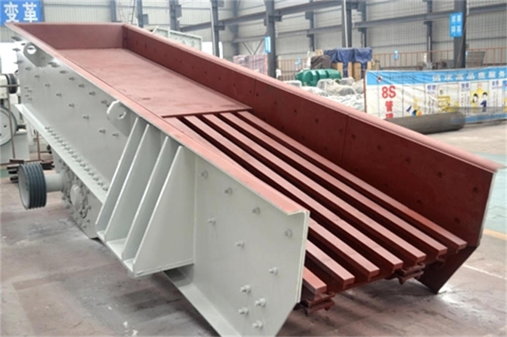 ZSW系列振動給料機主要由彈簧支架、給料槽、振動器、彈簧及電機等組成.激振器是由兩個成特定位置的偏心軸有齒輪嚙合組成,裝配時必須使兩齒輪按標記相嚙合,通過電機驅動,使兩偏心軸旋轉,從而產生巨大的合成直線激振力,使機體在支承彈簧上作強制振動,物料則以此振動為主動力,在料槽上作滑動及拋擲運動,從而使物料前移達到給料的目的.當物料通過槽體上的篩條時,較小的料通過篩條間隙落下,可不經過下道破碎工序,起到了篩分的效果.