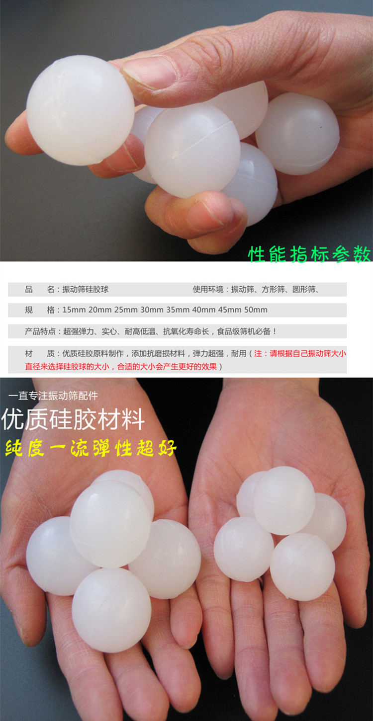 咨詢熱線:15537323577 振動篩彈跳球是振動篩不可缺少的部分,它是在振動篩工作的時候受沖孔板的作用力不停地上下跳動,往復(fù)地敲擊篩網(wǎng),從而實現(xiàn)清理篩網(wǎng)提高透網(wǎng)率的目的。