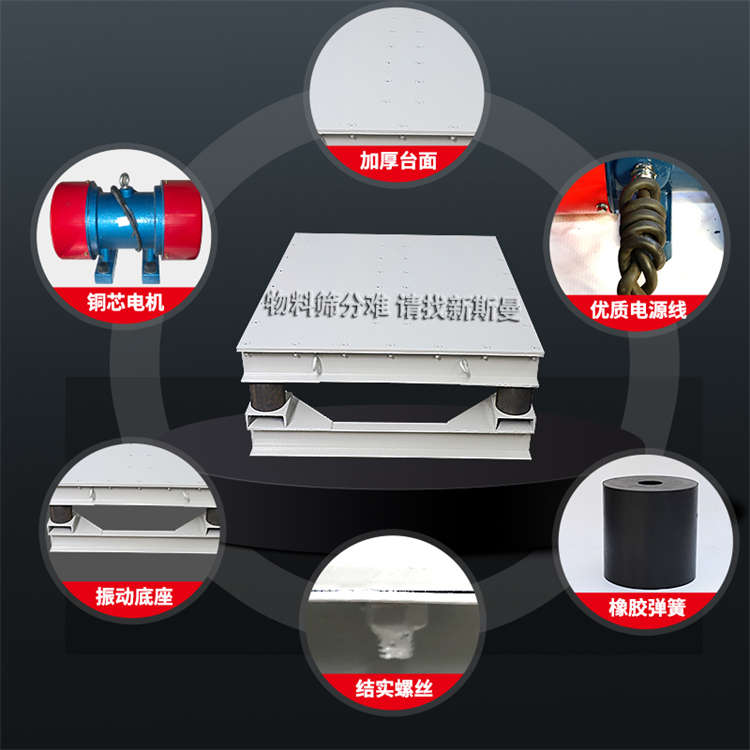 振動(dòng)平臺(tái)在使用過(guò)程中,可以通過(guò)調(diào)節(jié)振動(dòng)電機(jī)激振力大小、來(lái)使平臺(tái)上物料實(shí)現(xiàn)理想的形式。振動(dòng)電機(jī)為激振源,噪聲低、耗電小、維護(hù)簡(jiǎn)單。