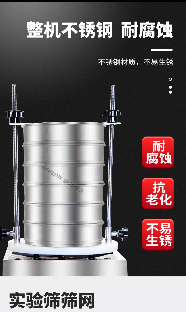 3. 把標準篩框按孔徑從小到大,從下到上依次疊放到篩框底座上。