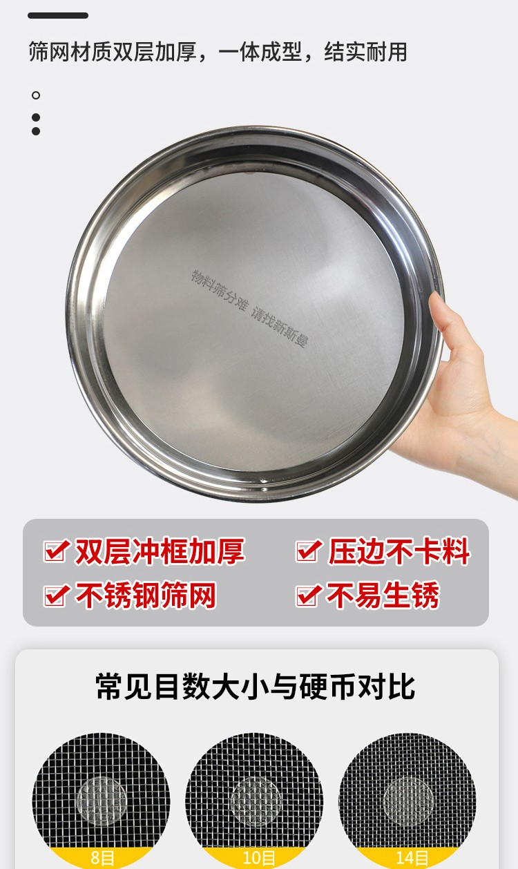 標準檢驗篩(試驗篩)在訂購時請說明所測試物料和篩分粒度,根據(jù)您提供的數(shù)據(jù)來確定篩框大小、層數(shù)及篩網(wǎng)尺寸。