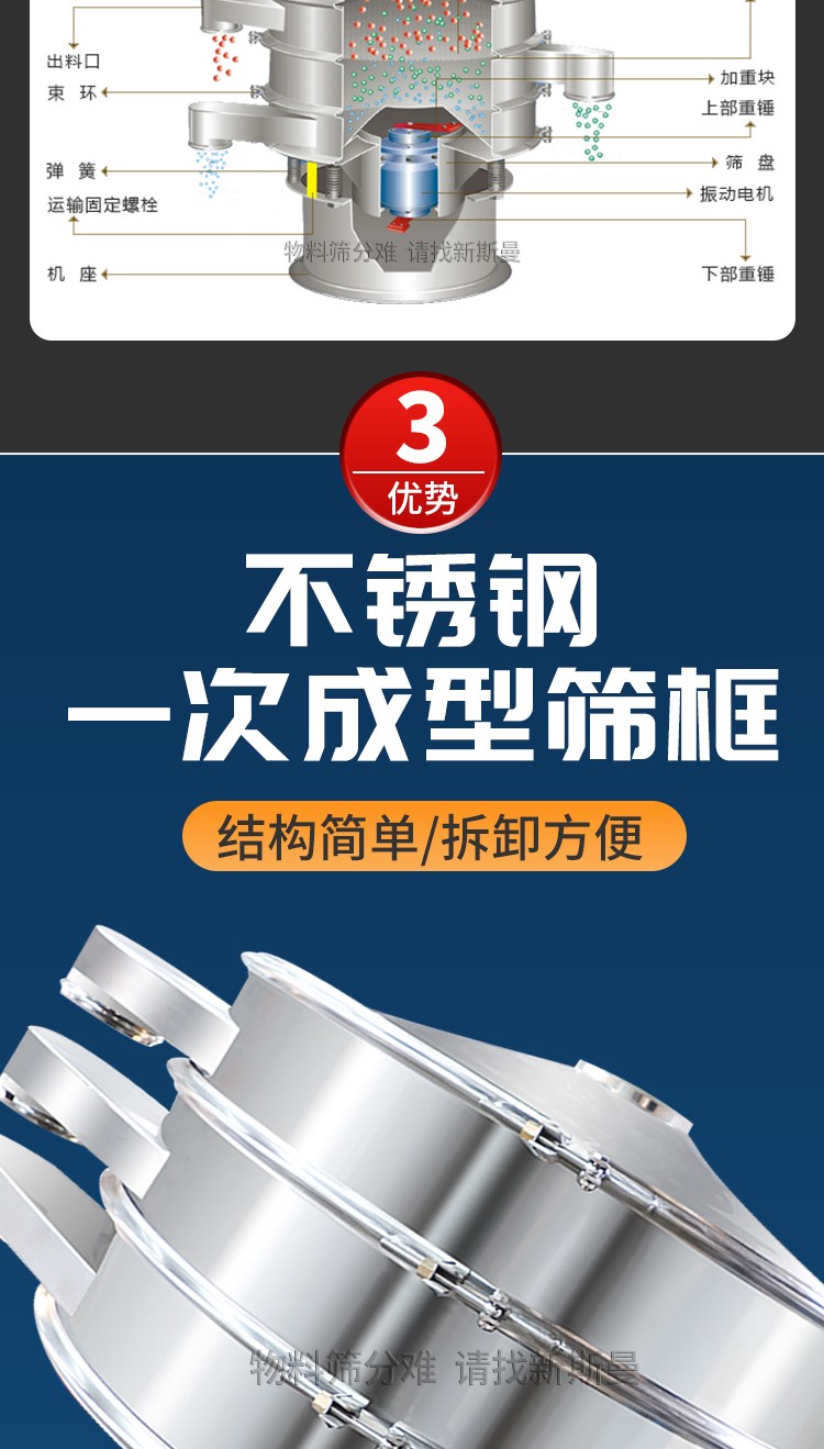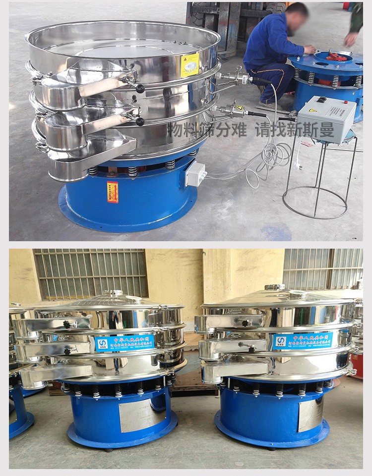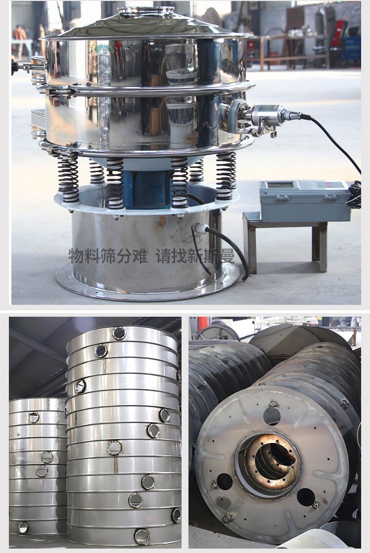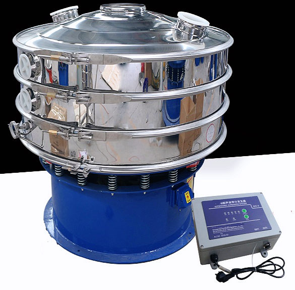 超聲波振動(dòng)篩是將220V、50Hz或110V、60Hz電能轉(zhuǎn)化為36KHz的高頻電能,輸入超聲換能器,將其變成36KHz機(jī)械振動(dòng),產(chǎn)生的功率超聲波使篩網(wǎng)作高頻振動(dòng)。篩網(wǎng)上的物料在作低頻旋振運(yùn)動(dòng)的同時(shí),疊加上超聲振動(dòng),既可防止網(wǎng)孔堵塞,又可使篩分機(jī)提高產(chǎn)量和質(zhì)量,從而達(dá)到快速篩分和清網(wǎng)的目的,使超微細(xì)粉篩分成為易事。該系統(tǒng)在傳統(tǒng)的振動(dòng)篩基礎(chǔ)上在篩網(wǎng)上引入一個(gè)低振幅、高頻率的超聲振動(dòng)波(機(jī)械波),以改變超微細(xì)分體的篩分性能。新斯曼系列超聲波旋振篩是在旋振篩基礎(chǔ)上加裝了一套超聲波篩分系統(tǒng),能有效解決物料:強(qiáng)吸附性、易團(tuán)聚、高靜電、高精細(xì)、高密度、輕比重等篩分難題,具有優(yōu)越的性能!篩分精度比普通旋振篩可提高1—70%,產(chǎn)量可提高0.5-10倍。干粉粒度可分級(jí)到25μm(600目)。特別適合高附加值精細(xì)分體的用戶使用。